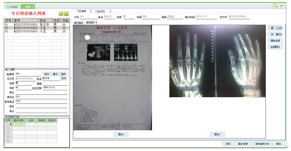 每个病员单独建立档案,记录每次诊断的病例情况,检查的图片信息。可查看病员历史的诊断、用药情况。可为医生一共完整的分析诊断数据,便于医生准确把握病员病情对症下药。