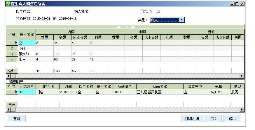 报表和查询功能丰富,可查询各种收费的综合情况和药房的情况,如医生处方量、每天收入、药品销量、药品库存量、药品利润、病人药费清单等,为领导的分析和决策提供必要的依据。